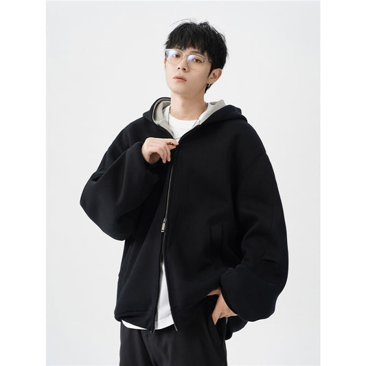 Double Zipper Hooded Sweater Men's Casual Jacket